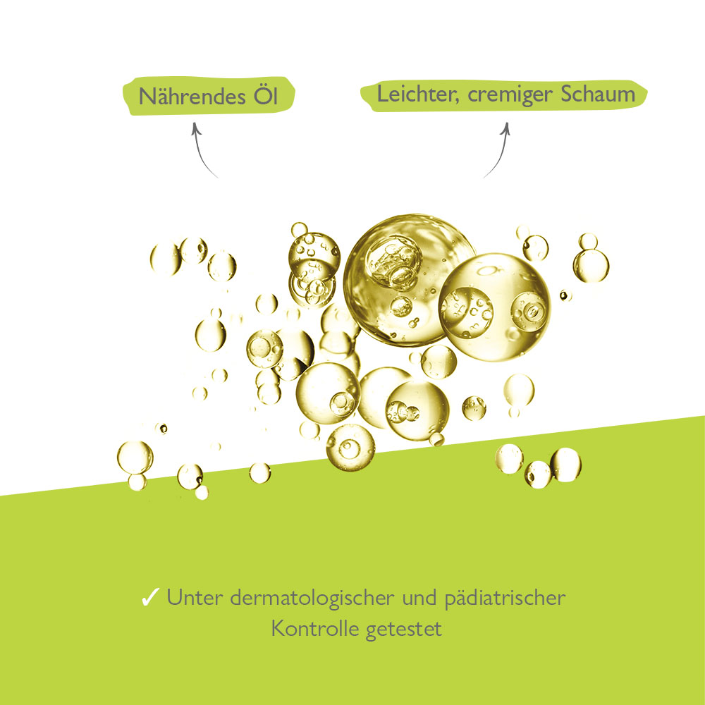 Kann zum Duschen und zum Baden verwendet werden. Gründlich abspülen. Brennt nicht in den Augen.