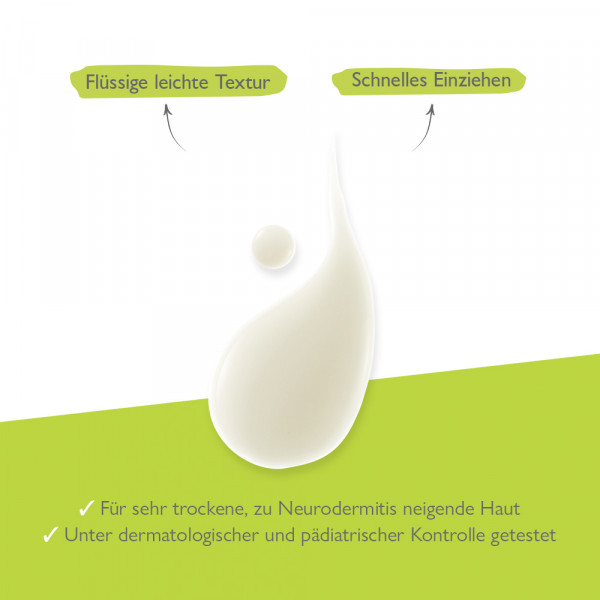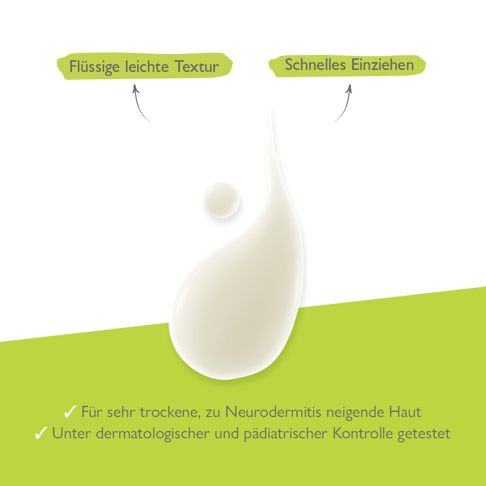 - Diese Rückfettende Milch lindert sofort Beschwerden, Irritationen, Trockenheit und reduziert den Juckreiz um 95 %¹ bei trockener, zu atopischem Ekzem neigender Haut.