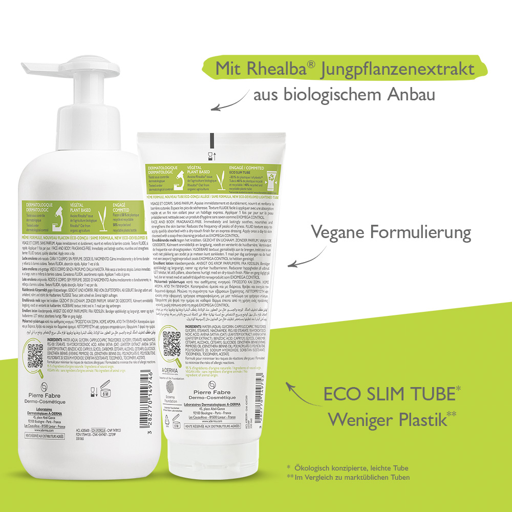 Wie alle unsere Pflegeprodukte mit Rhealba®-Haferextrakt ist auch diese INTENSIV-KÖRPERMILCH in den Empfehlungen der europäischen Dermatologie für atopisches Ekzem erwähnt: Emollient PLUS****.