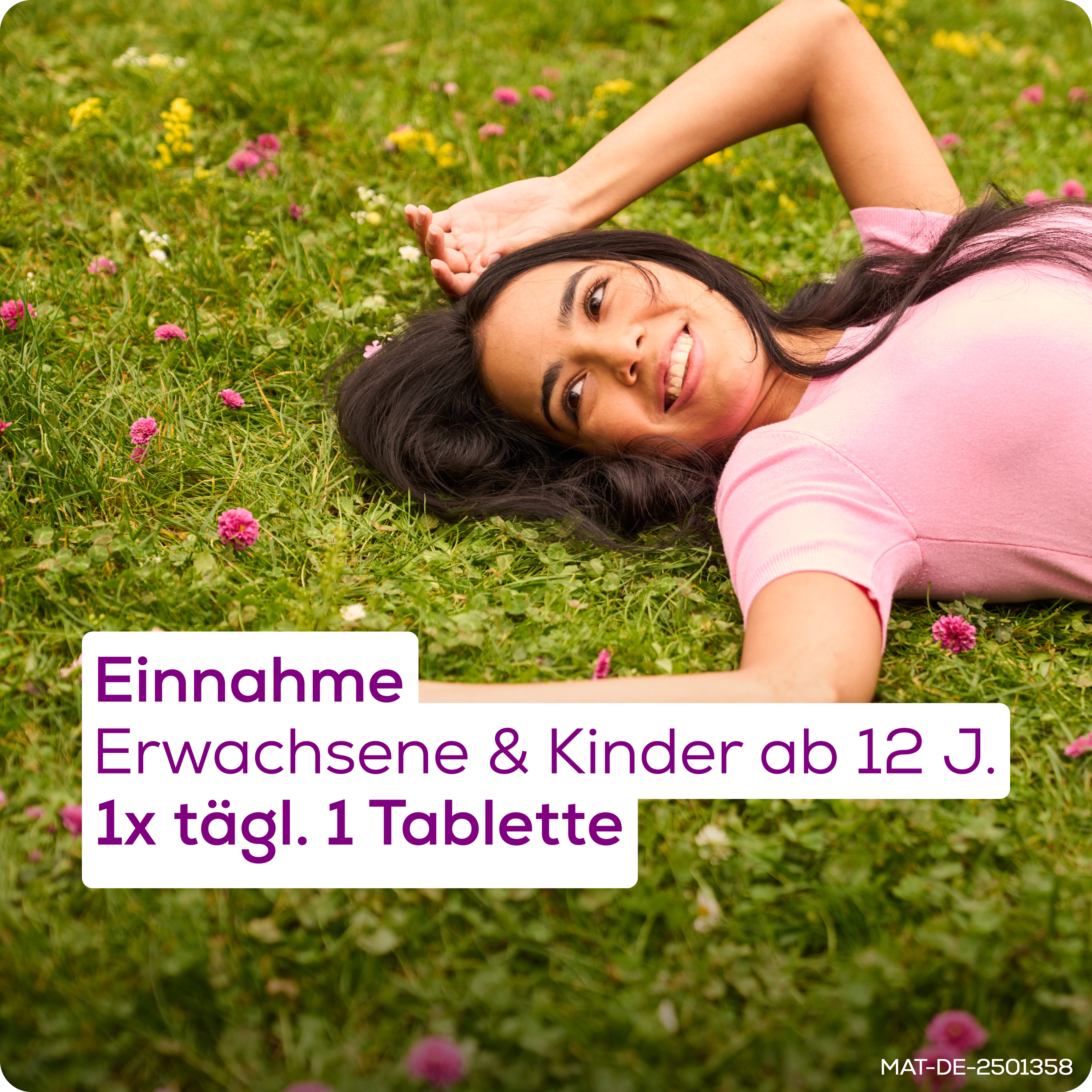 Das Antiallergikum kontrolliert allergische Symptome wirksam für 24 Stunden und muss somit nur 1x täglich eingenommen werden. Um den Alltag ohne lästige Allergiesymptome zu meistern, nehmen Erwachsene und Kinder ab 12 Jahren eine Tablette idealerweise eine Stunde vor dem Frühstück mit einem Glas Wasser ein.