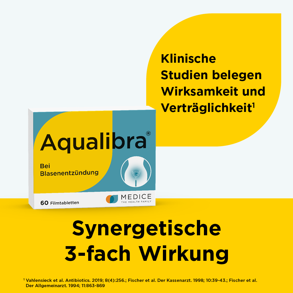 Aqualibra® ist bei akuten sowie bei wiederkehrenden unkomplizierten Harnwegsinfekten geeignet und kann auch unterstützend zur Antibiotika-Therapie eingesetzt werden. Auch in diesem Fall kommt das umfassende Wirkspektrum von Aqualibra® zum Tragen: Das pflanzliche Arzneimittel lindert die Symptome, unterstützt die Bekämpfung der Erreger und dient zusätzlich der gründlichen Durchspülung.