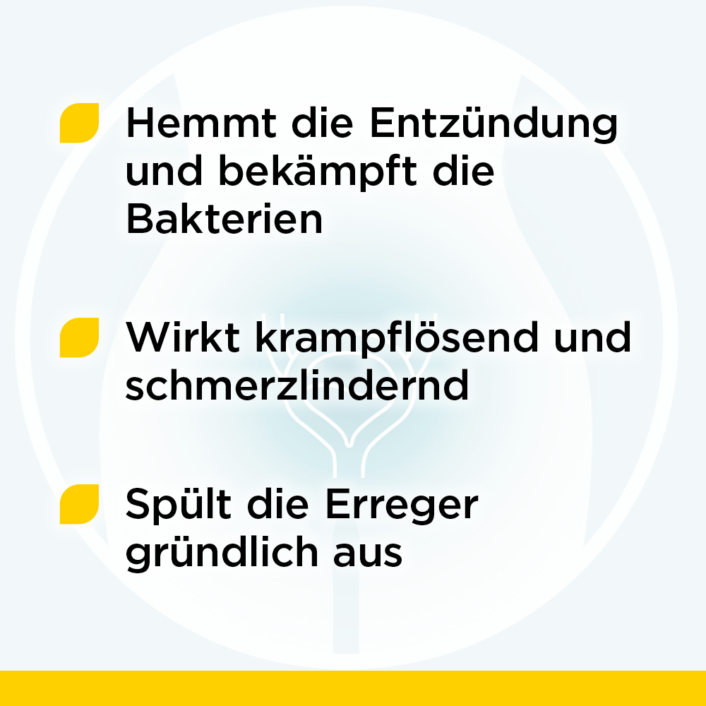 Für Jugendl. ab 12 J. u. Erw. Bei Blut im Urin, Fieber o. bei Anhalt. d. Beschw. über 5 Tage muss ein Arzt aufgesucht werden.