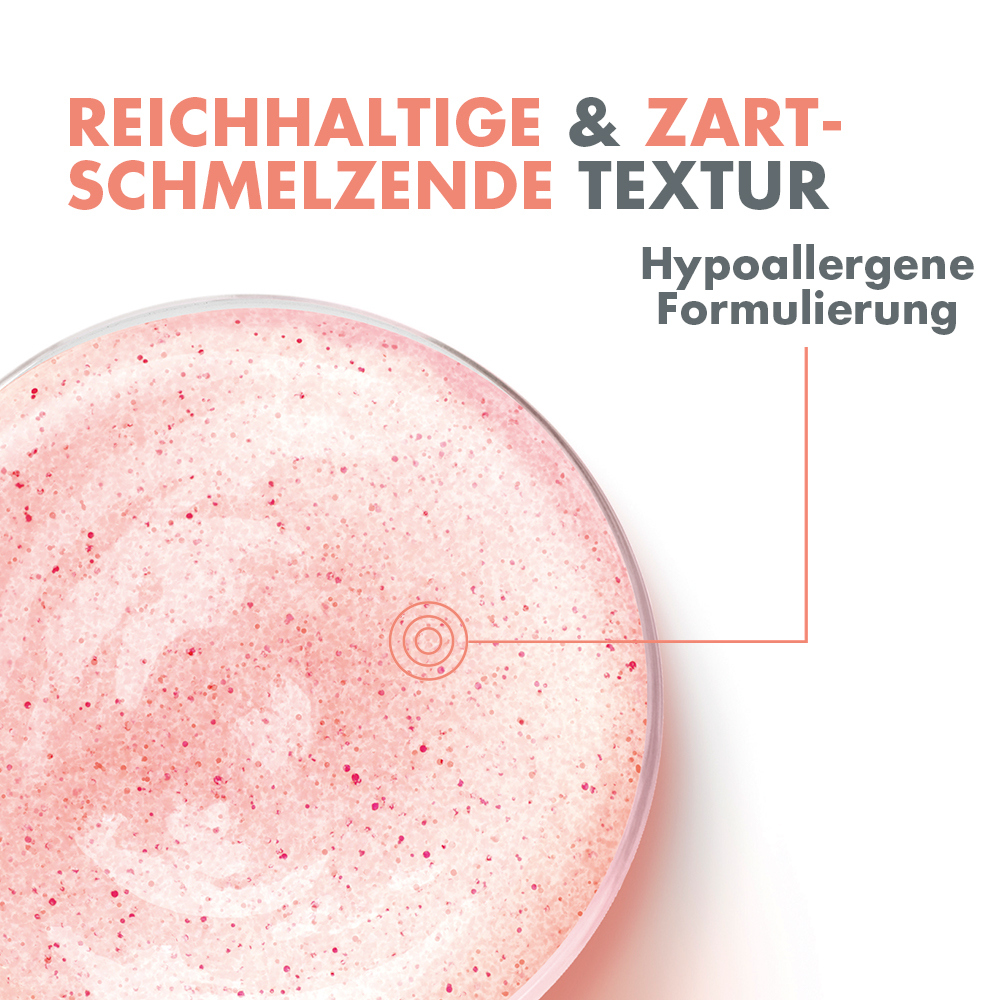 Dieses Peeling ist für Erwachsene mit empfindlicher Haut, um abgestorbene Haut und überschüssigen Schmutz zu entfernen. Die sanfte Kombination aus Jojobawachs und Zellulosepartikeln spendet Feuchtigkeit und verbessert den Hautton. Das Ergebnis des sanften Peelings mit erfrischendem Duft ist ein angenehmes Körpergefühl, das mit zarter Haut einhergeht.