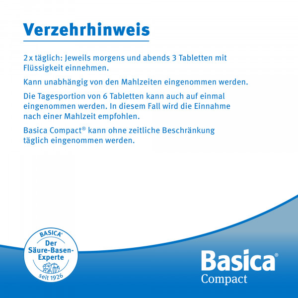 Basica Compact® sind kleine, leicht zu schluckende Tabletten. In der praktischen Dose ideal zum Mitnehmen.