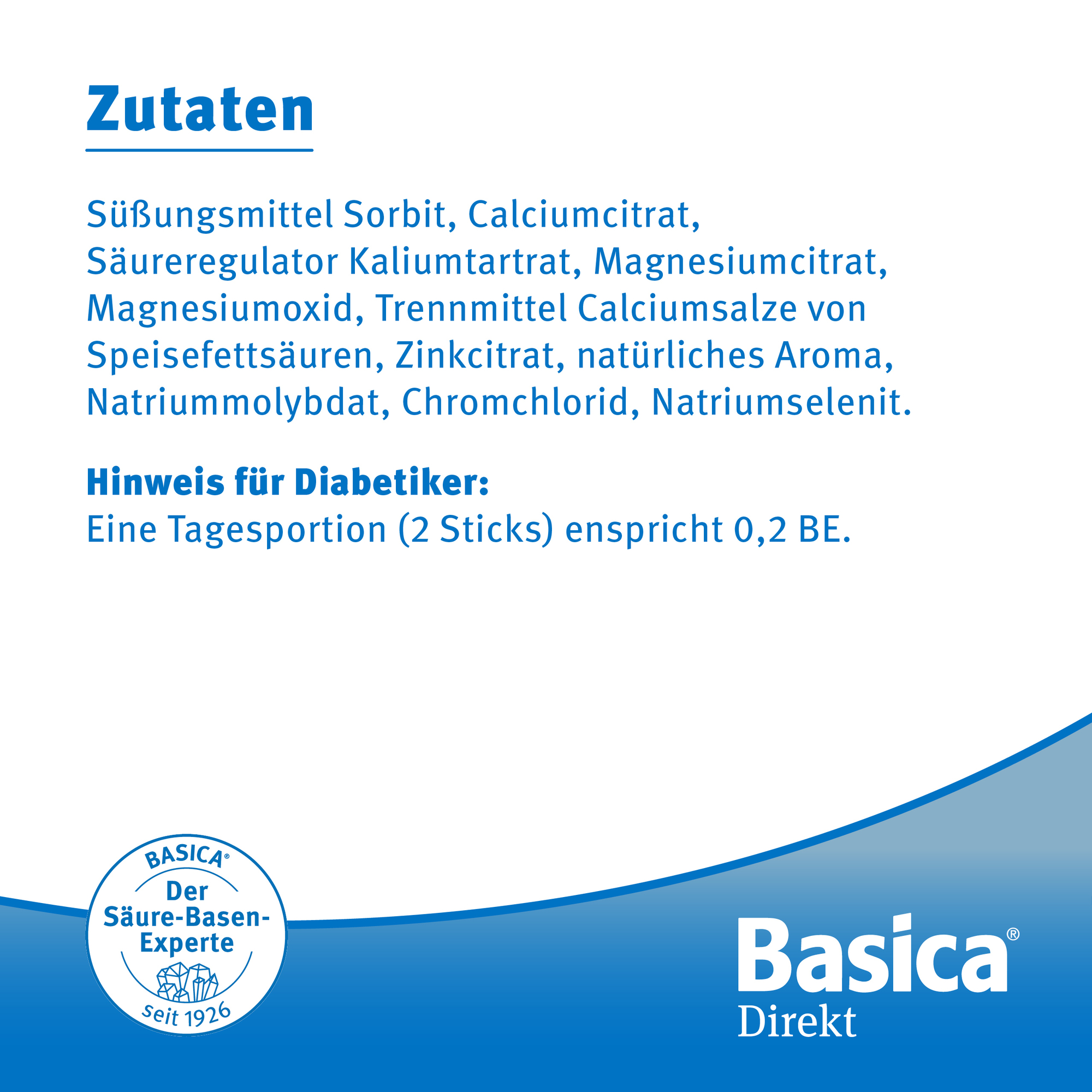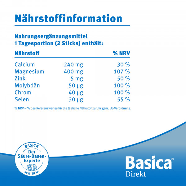 Basica® mit basischen Mineralstoffen und wertvollen Spurenelementen unterstützt das gesundheitliche Wohlbefinden und Zink den normalen Säure-Basen-Stoffwechsel.