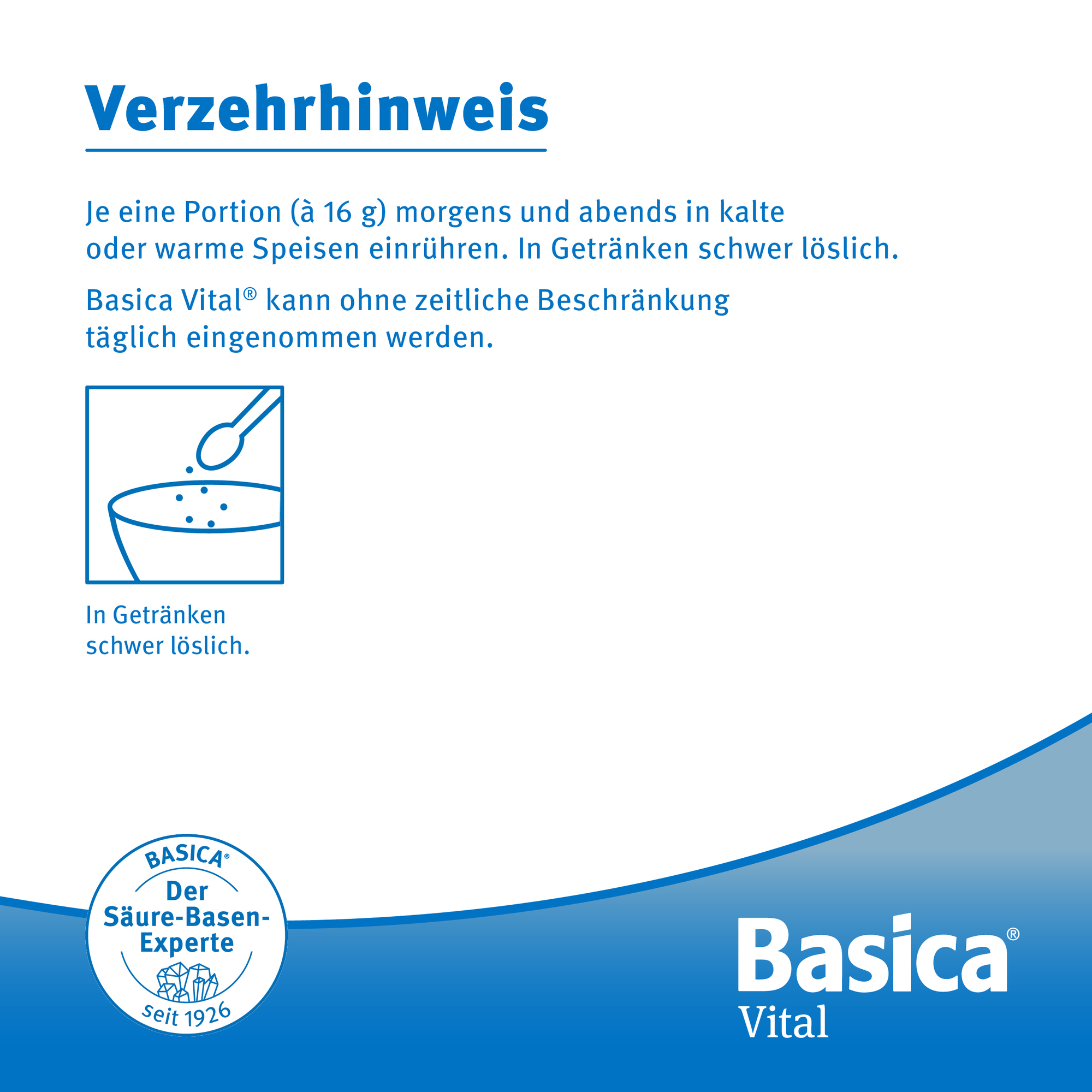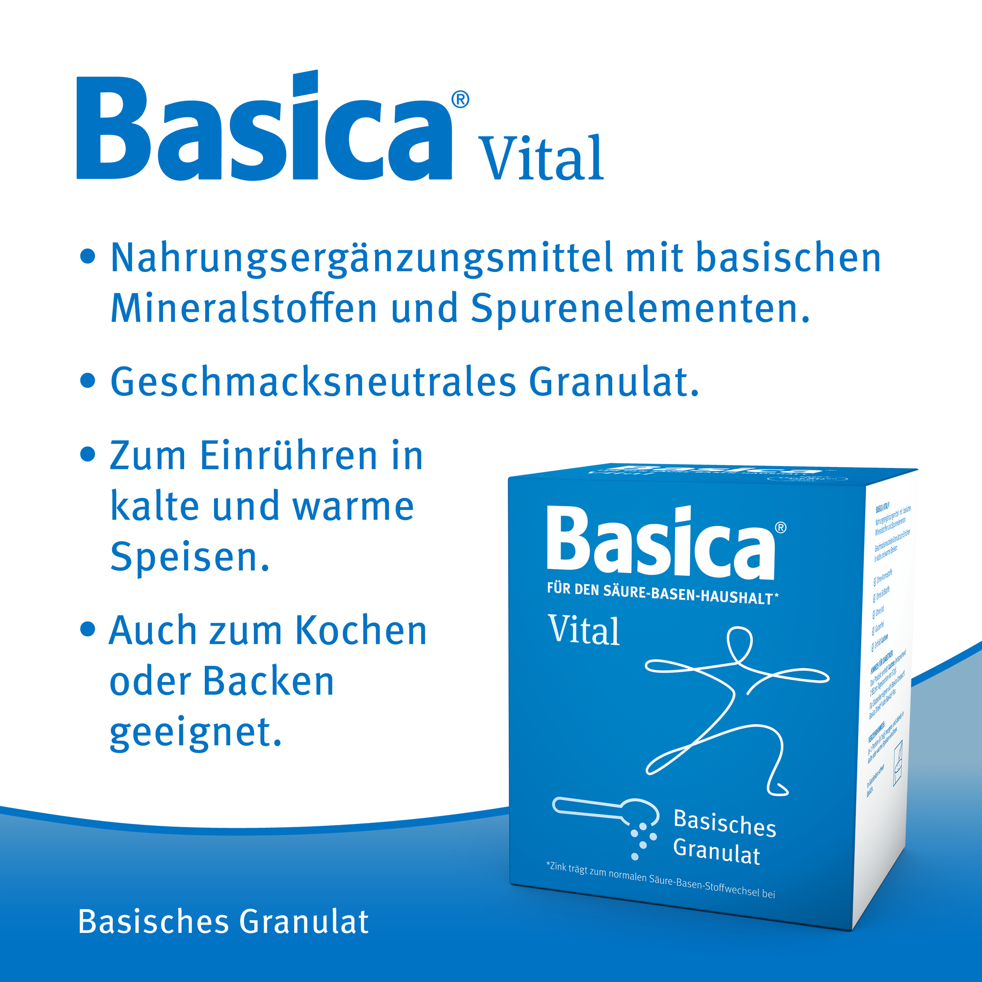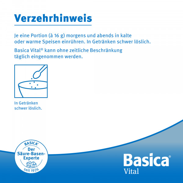 Granulat ist frei von Aroma- und Süßstoffen. Basica Vital® ist geschmacksneutral und wird in kalte oder warme Speisen