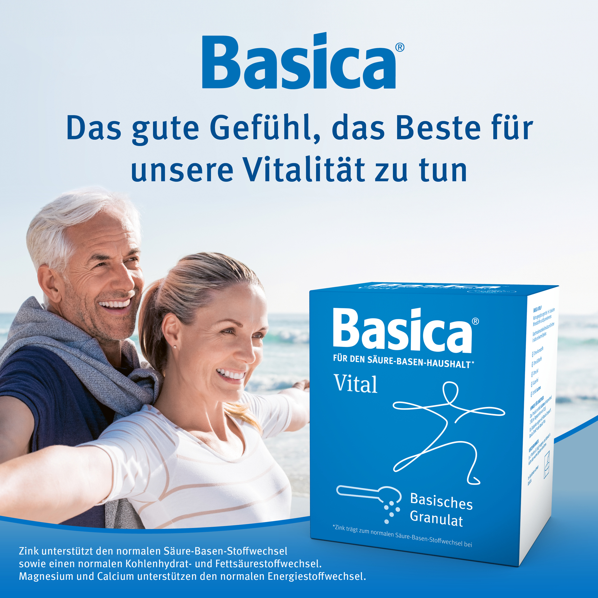 Basica® mit basischen Mineralstoffen und wertvollen Spurenelementen unterstützt das gesundheitliche Wohlbefinden und Zink den normalen Säure-Basen-Stoffwechsel.
