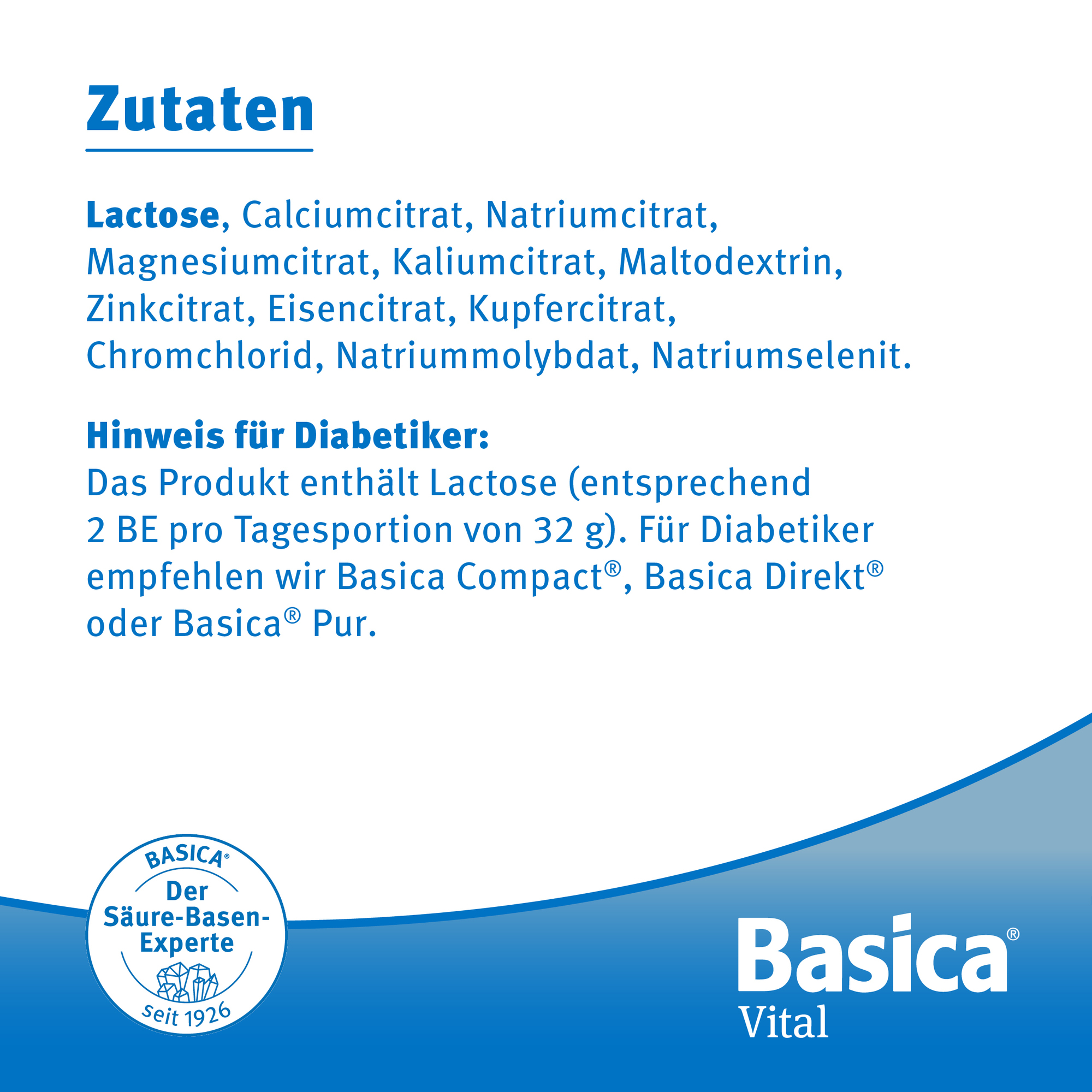 Lactose, Calciumcitrat, Natriumcitrat, Magnesiumcitrat, Kaliumcitrat, Maltodextrin,Zinkcitrat, Eisencitrat, Kupfercitrat, Chromchlorid, Natriummolybdat, Natriumselenit