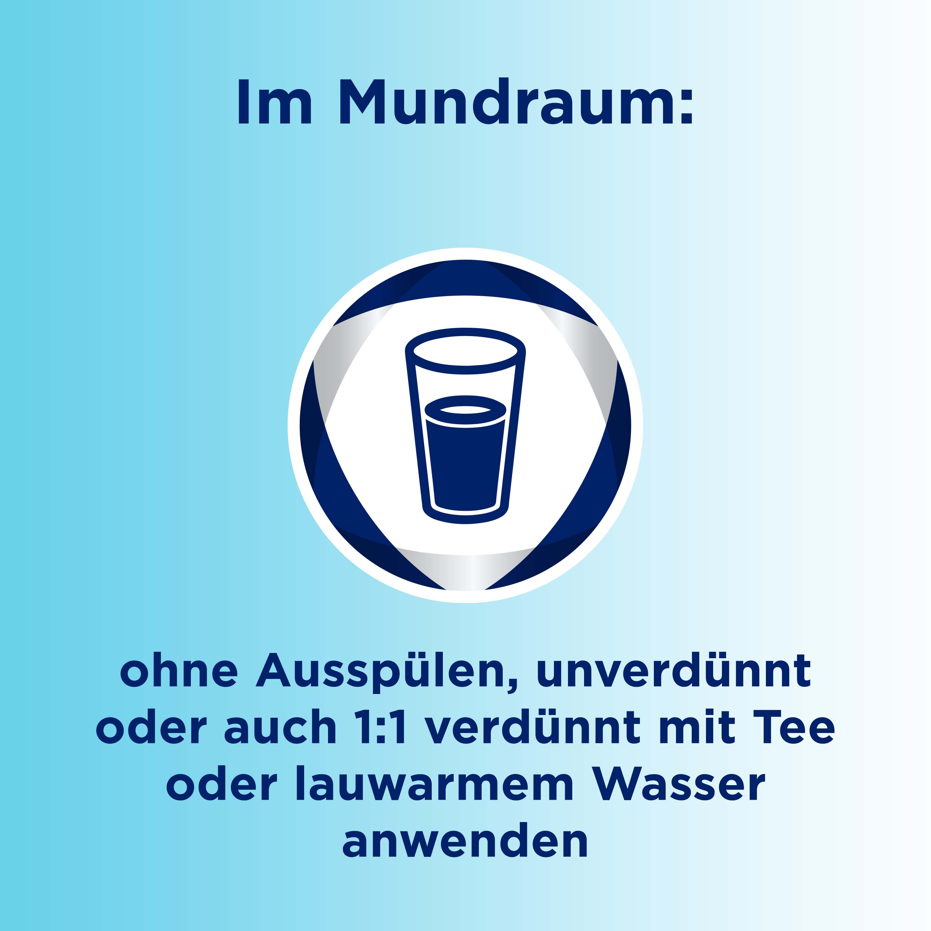Oder:Gurgeln Sie mit dem Arzneimittel. Lassen Sie das Arzneimittel maximal 5 Minuten einwirken..