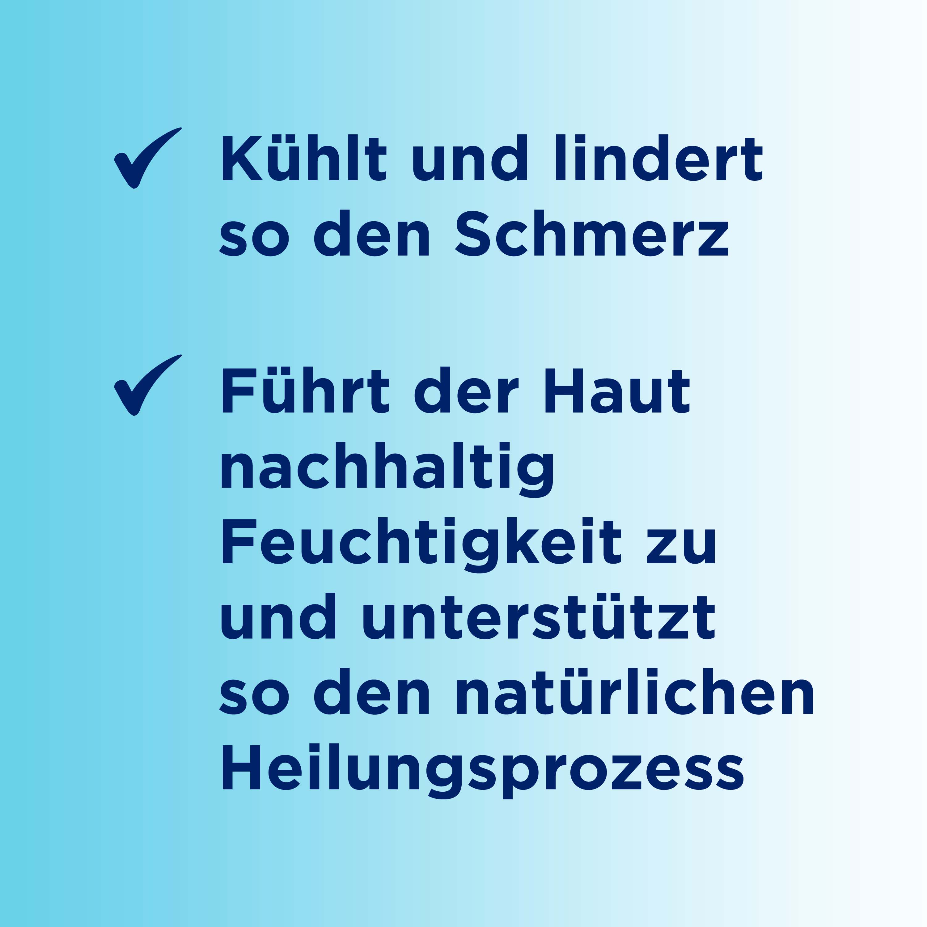 Die kühlende Wirkung ist besonders angenehm bei leichten Verbrennungen und Sonnenbrand. Der weiche Schaum muss nicht verrieben werden – so wird die Haut nicht zusätzlich gereizt.