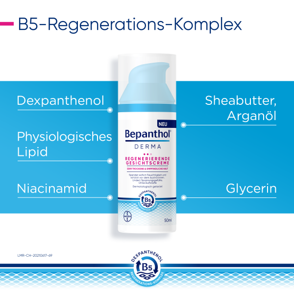 - Die Regenerierende Gesichtscreme ist eine dermatologisch getestete medizinische Hautpflege aus dem Hause Bepanthen® – wissenschaftlich fundiert und von Fachleuten empfohlen.