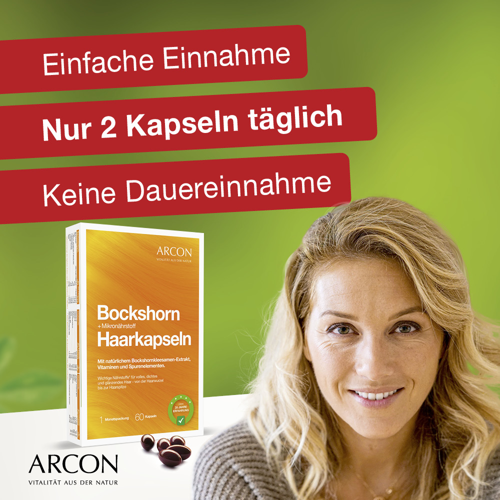 ARCONNahrungsergänzungsmittel sind kein Ersatz für eine ausgewogene und abwechslungsreiche Ernährung und eine gesunde Lebensweise. Die angegebene empfohlene tägliche Verzehrsmenge darf nicht überschritten werden. Außerhalb der Reichweite von kleinen Kindern aufbewahren.