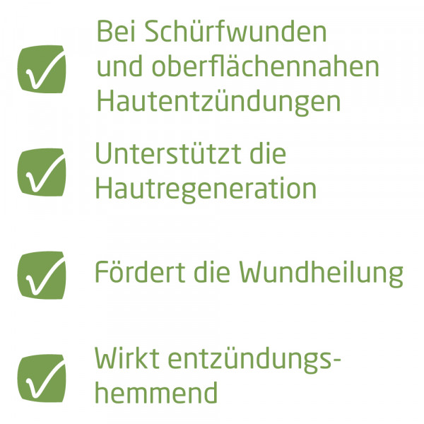 Wirkstoff: Calendula officinalis 2a Urtinktur Warnhinweis: Enthält Sesamöl, Wollwachs, Butylhydroxytoluol – Packungsbeilage beachten. Anwendungsgebiete gemäß der anthroposophischen Menschen- und Naturerkenntnis. Dazu gehört: Behandlung von Wunden und oberflächennahen Entzündungen, auch bei verzögerter Wundheilung und Neigung zu Vereiterung.