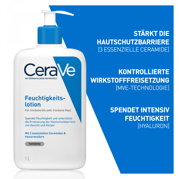 Die Feuchtigkeitslotion von CeraVe kann beliebig oft und großzügig auf die gereinigte Haut von Gesicht und Körper aufgetragen werden. Diese dafür regelmäßig insbesondere auf trockene und sehr trockene Hautstellen geben und sanft in kreisenden Bewegungen einmassieren. Die Augenkonturen aussparen. Dank ihrer nicht-komedogenen und parfumfreien Formel kann die feuchtigkeitsspendende Pflegelotion für alle Hauttypen, einschließlich für zu Neurodermitis und Allergien neigende Haut verwendet werden. Um die Pflegeroutine zu intensivieren eignet sich darüber hinaus ein CeraVe Reinigungsprodukt für trockene Haut.