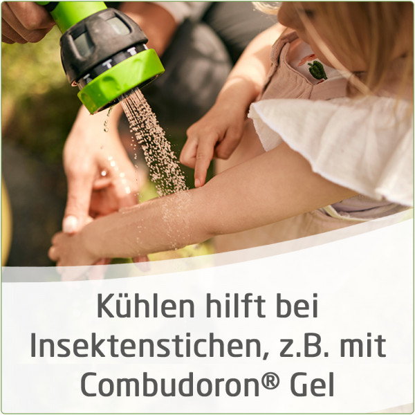 Insektenstiche und Sonnenbrand können die Freude im Sommer etwas trüben. In den ersten Stunden wiederholt dünn aufgetragen, kühlt Combudoron® Gel die betroffene Stelle und lindert den Schmerz. Im Anschluss an die Erstversorgung einer Verbrennung mit Combudoron® Flüssigkeit regt Combudoron® Gel die Regeneration der Haut an.
