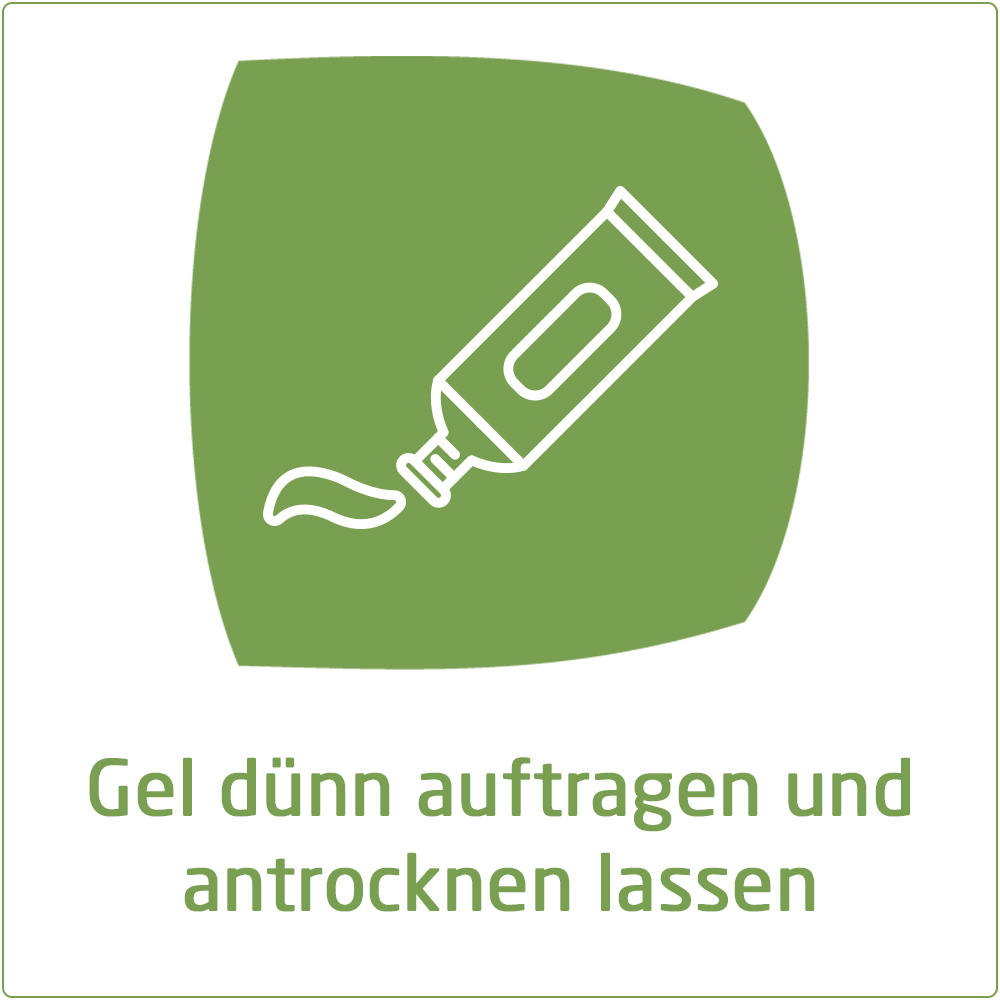 Tragen Sie das Arzneimittel auf die betroffene(n) Hautstelle(n) auf. Gegebenenfalls können Sie das angetrocknete Gel mit einem Verband bedecken.