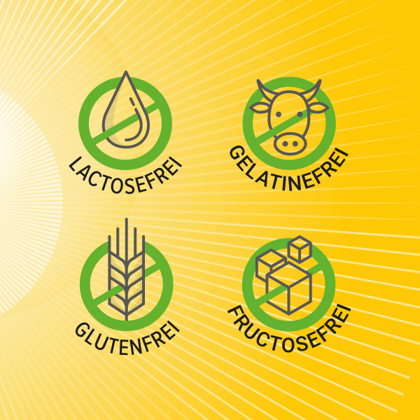 - Frei von Gelatine, Gluten, Laktose und Fruktose