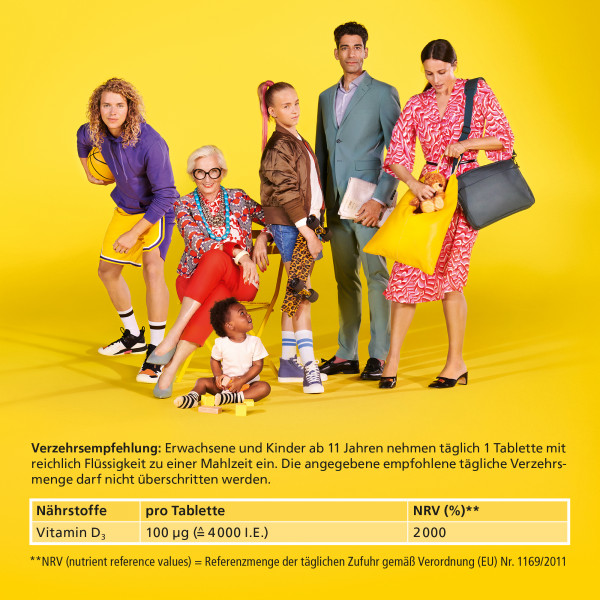 *Nahrungsergänzungsmittel: Vitamin D trägt zu einer normalen Funktion des Immunsystems und zur Erhaltung normaler Knochen und Muskeln bei. Nahrungsergänzungsmittel sind kein Ersatz für eine ausgewogene, abwechslungsreiche Ernährung und eine gesunde Lebensweise.