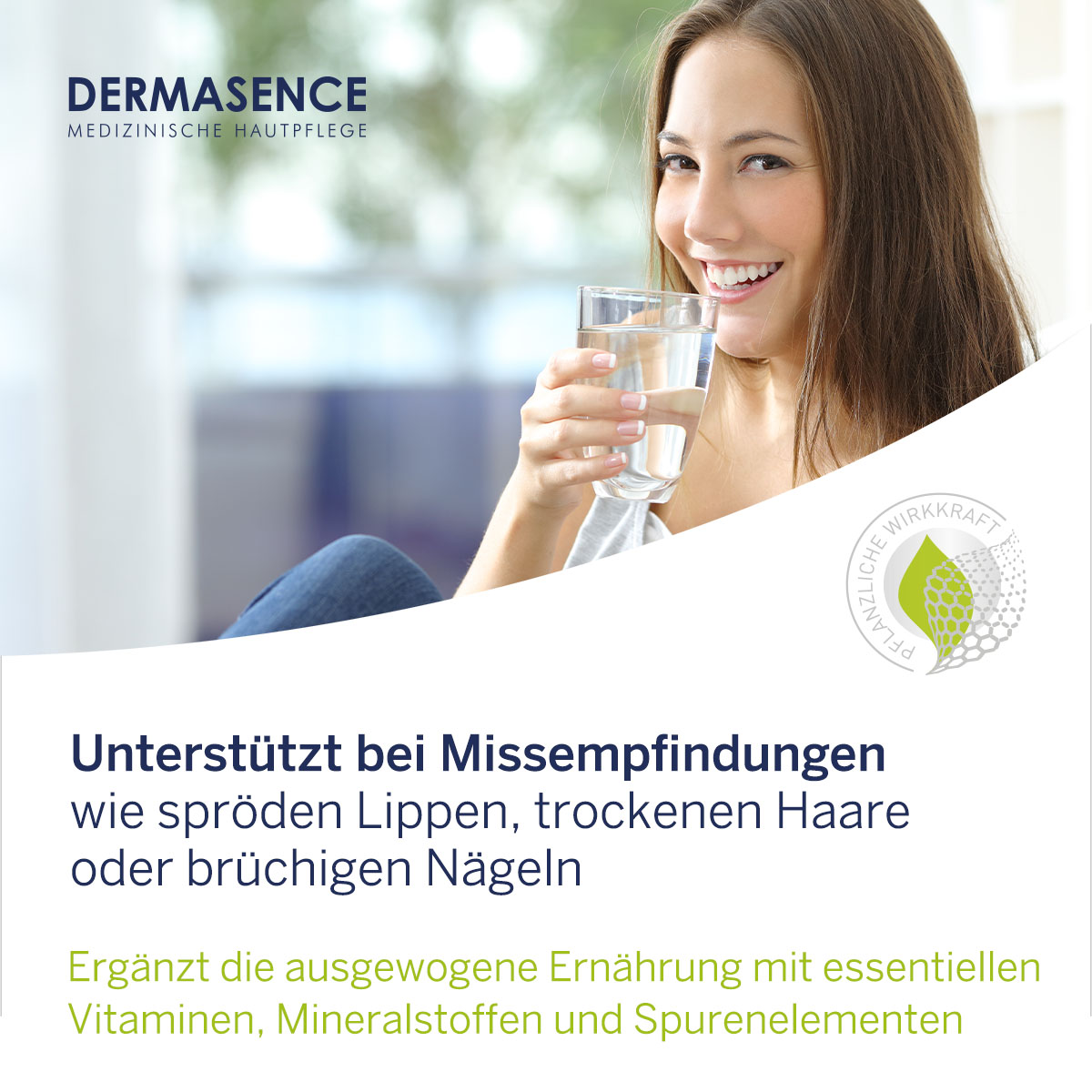 Dermasence H³ Komplex ist wertvoll für Haut, Haare und Nägel. Gerade in der heutigen Zeit ist bei einer falschen, zum Teil hektischen Ernährung die Versorgung mit lebenswichtigen Vitaminen und Spurenelementen oft nicht gewährleistet. Daher ist eine Nahrungsergänzung sinnvoll.
