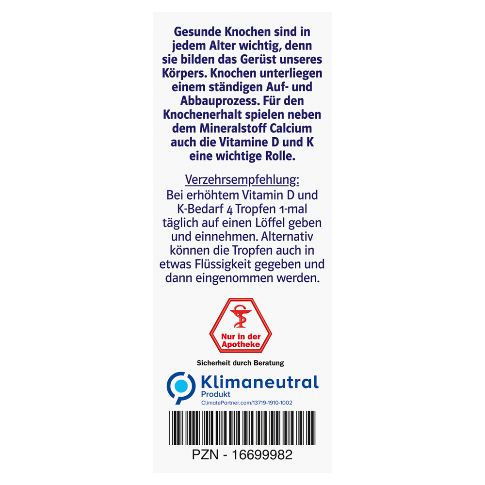 • Vitamin K trägt wie Vitamin D zum Erhalt normaler Knochen bei