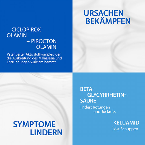 Die Kelual DS Anti-Schuppen Creme entfernt dank der patentierten Aktivstoff-Kombination aus Ciclopirox Olamin + Pirocton Olamin effektiv Schuppen im Gesicht und beugt Rückfällen 6 Wochen* lang vor.