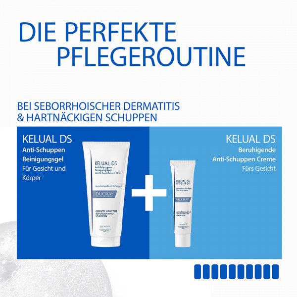 Die KELUAL DS Anti-Schuppen Creme eignet sich zur Pflege von Gesichtshaut, die zu seborrhoischer Dermatitis neigt.