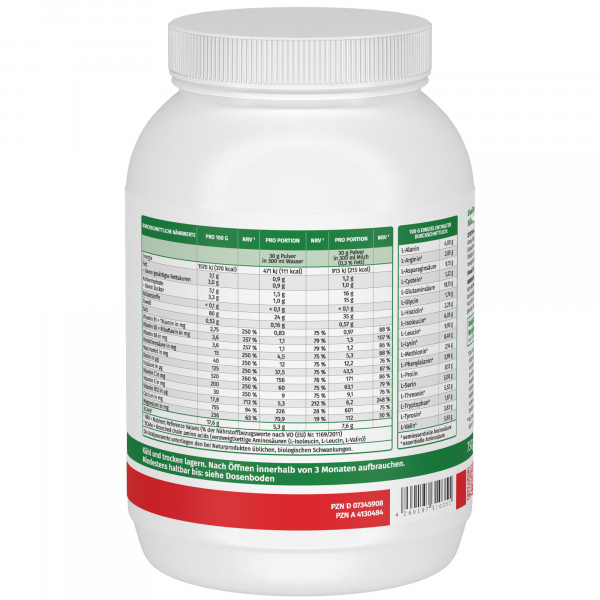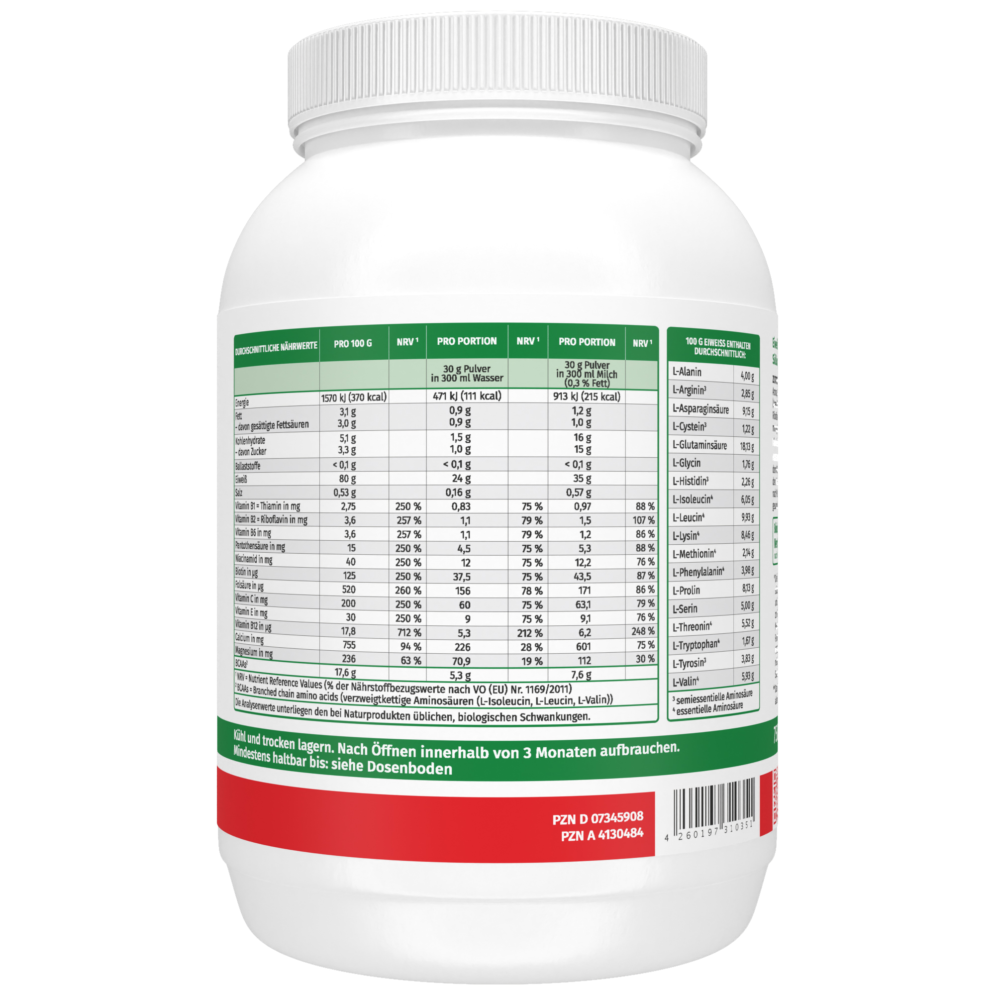 | Durchschnittliche Nährwerte | pro 100 g | %NRV* | pro Portion (30 g Pulver in 300 ml Wasser) | %NRV* | pro Portion (30 g Pulver in 300 ml Milch 0,3% Fett) | %NRV* |