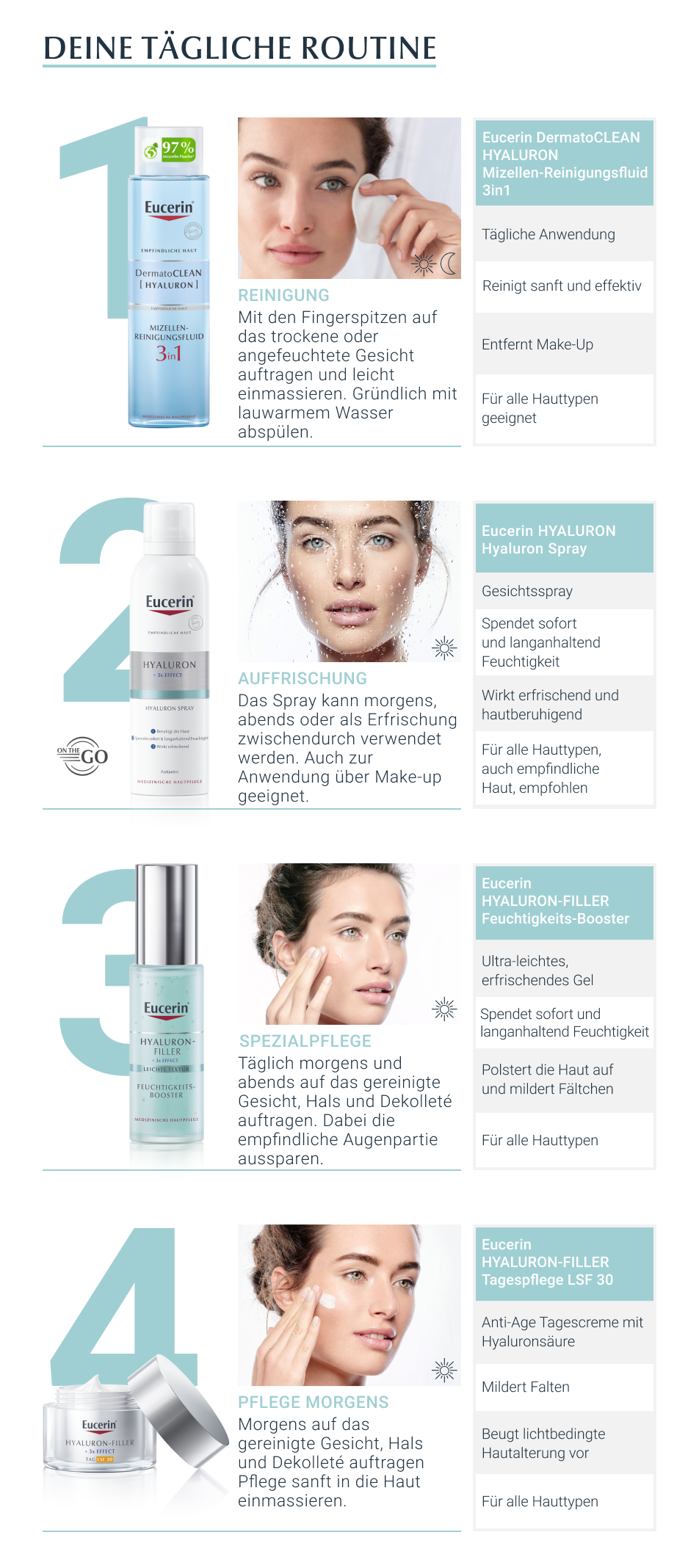 Das Eucerin Hyaluron Spray kann jederzeit verwendet werden.
