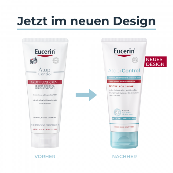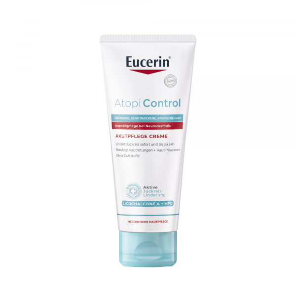 Die Eucerin AtopiControl Akutpflege Creme wurde speziell für die Behandlung von Schubphasen leichter Neurodermitis entwickelt. Hierbei lindert die Hautcreme den Juckreiz wirksam und beruhigt die Haut. Die Creme kann zur Hautpflege so oft wie nötig auf die betroffenen Hautstellen aufgetragen werden.