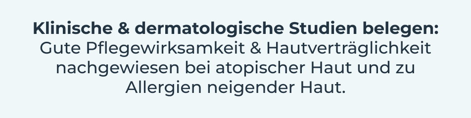 Dermatologische Studien bestätigen die Eignung für atopische Haut bei Erwachsenen, Kindern und Babys ab 3 Monaten. Das Risiko von Hautirritationen und Allergien ist besonders gering.