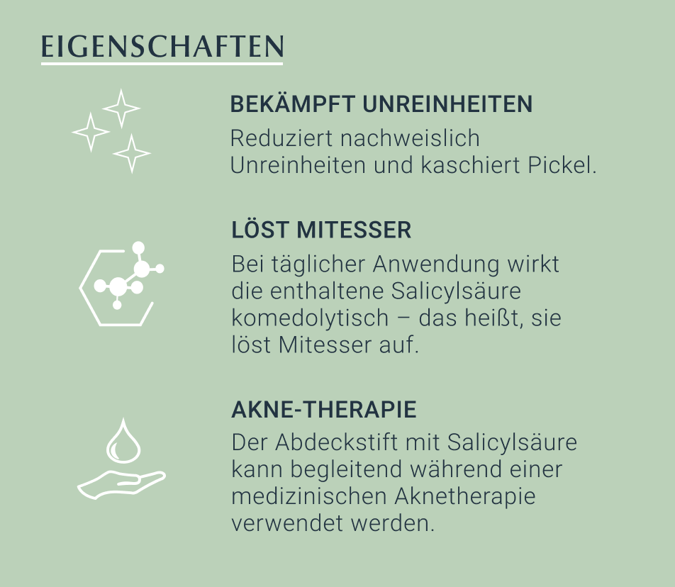 • Deckt Hautunreinheiten ab und reduziert Pickel