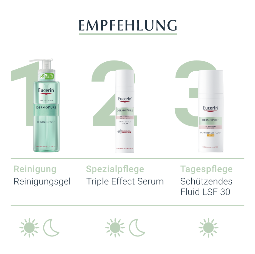 - Reduziert sichtbar vorhandene Pickelmale und beugt deren Neuentstehung vor