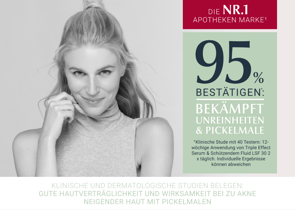 - Hautunreinheiten, Pickel, Mitesser und Akne werden reduziert, ein Wiederauftreten verhindert