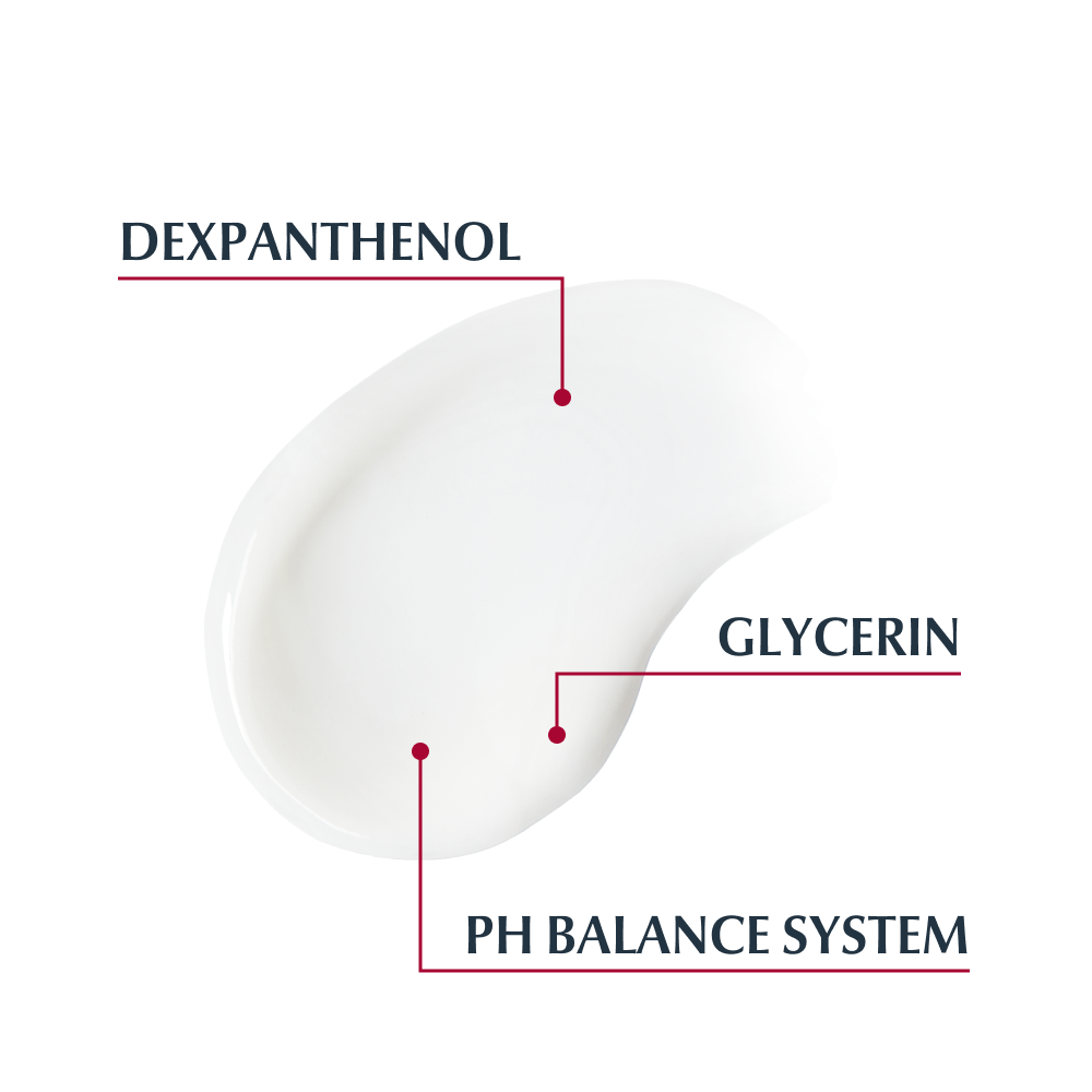 Das Eucerin pH Balance System mit ph5 Citratpuffer stellt den optimalen pH-Wert der Haut wieder her, während 5% Dexpanthenol die Regeneration der Haut stimulieren und helfen, sie widerstandsfähiger zu machen.