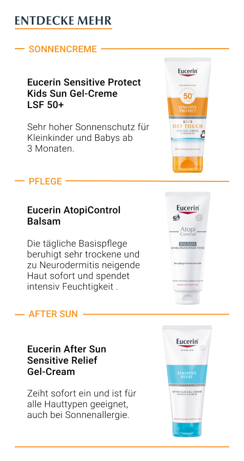 Sonneneinstrahlung kann besonders schädlich für Kinder und Babys sein, da ihre Haut noch sehr empfindlich ist. Das Sensitive Protect Kids Sun Spray LSF 50+ von Eucerin bietet hierfür den idealen Schutz. Mit der ADVANCED SPECTRAL TECHNOLOGY kombiniert der Sonnenschutz UVA/UVB-Filter mit Licochalcone A zur Neutralisierung freier Radikale. So sorgt die Kinder Sonnencreme zuverlässig für HEV- (hochenergetisches sichtbares Licht) und UV-Schutz. Das Sonnenschutzmittel wurde extra für Kinder und Babys entwickelt, um empfindliche Haut zu beruhigen und vor Sonnenbrand sowie langfristigen sonnenbedingten Schäden zu schützen.