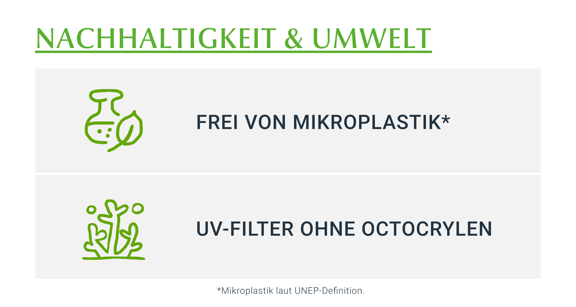 • Zieht sofort ein und hinterlässt ein angenehmes Hautgefühl