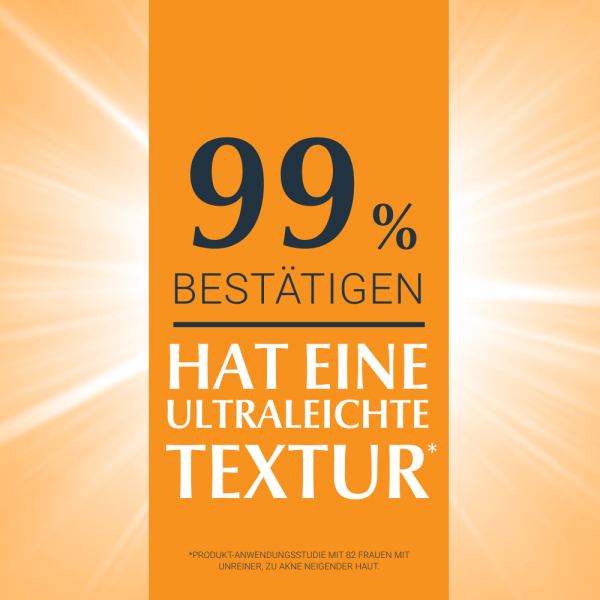 Der Sonnenschutz für fettige und unreine Haut ist unparfümiert mit einer ultraleichten, nicht fettenden Textur, die schnell einzieht. Die Textur ist klinisch und dermatologisch getestet und gut verträglich für unreine, zu Akne neigende Haut und auch empfindliche Haut.