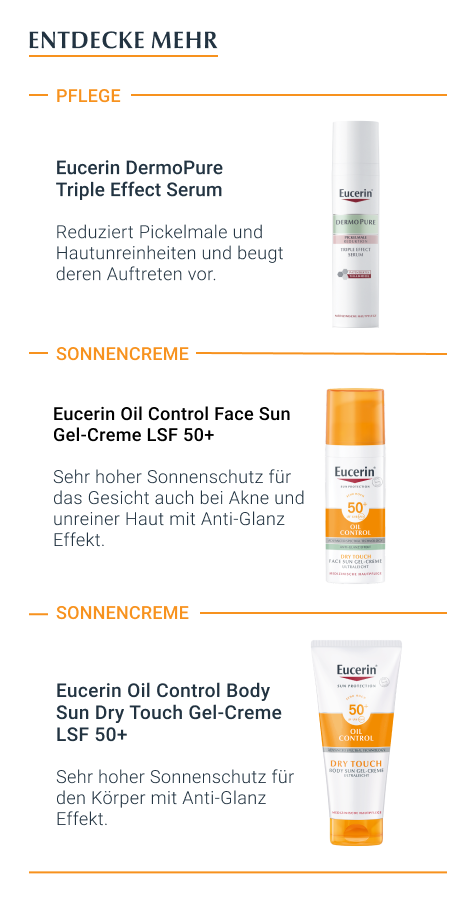 Ideal für unreine, zu Akne neigende Haut: Helle Farbpigmente in der Eucerin Gesichtscreme sorgen für einen gleichmäßigen, strahlenden Teint, indem sie Hautunreinheiten und Hautunebenheiten sofort ausgleichen.