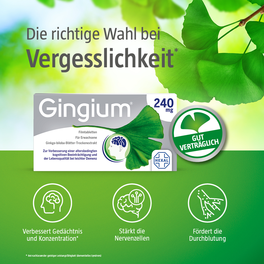 - Gingium® 240 mg verbessert Gedächtnis und Konzentration bei nachlassender geistiger Leistungsfähigkeita
