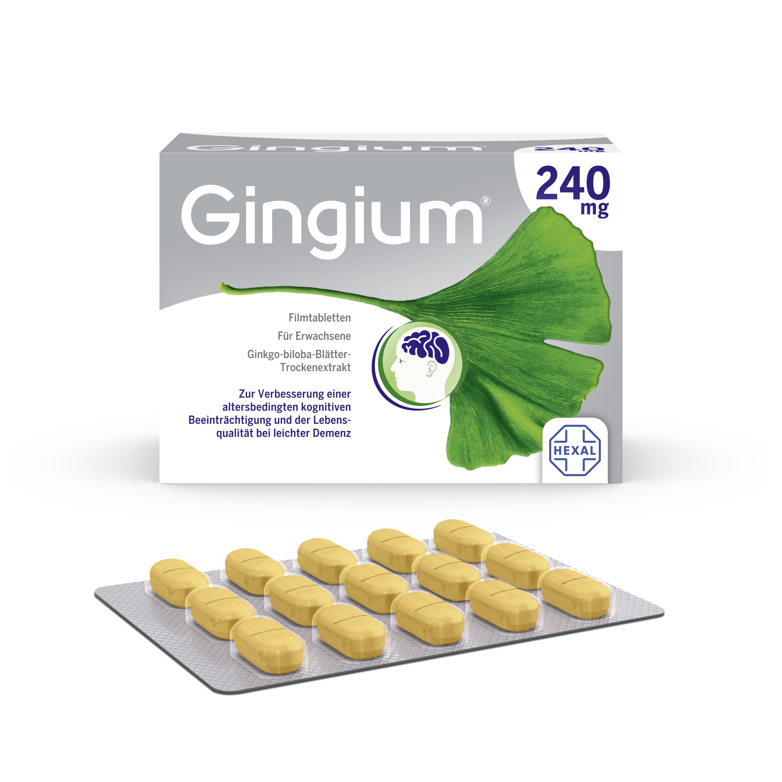 Gingium® extra 240 mg wird angewendet Zur symptomatischen Behandlung von hirnorganisch bedingten geistigen Leistungseinbußen. Die Anwendung erfolgt im Rahmen eines therapeutischen Gesamtkonzeptes bei fortschreitender Abnahme bzw. Verlust erworbener geistiger Fähigkeiten (dementielles Syndrom) mit den Hauptbeschwerden: Gedächtnisstörungen, Konzentrationsstörungen, Niedergeschlagenheit, Schwindel, Ohrensausen, Kopfschmerzen.