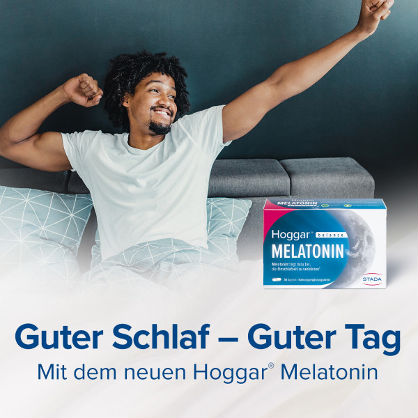 Hoggar® Melatonin Kapseln helfen auf sanfte und natürliche Weise dabei, abends zur Ruhe zu kommen und schneller einzuschlafen.
