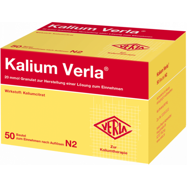 Kalium Verla® bewährt sich seit vielen Jahren als Arzneimittel mit höchsten Qualitätsstandards in der Therapie von Kaliummangelzuständen. Das hochwertige Pulver schmeckt erfrischend nach Citrus und kann einfach mit Wasser angerührt werden. So wird auch die tägliche Flüssigkeitsaufnahme unterstützt. Das aufgelöste Pulver ist außerdem nicht brausend, eine gute Alternative für alle, die Brausetabletten als unangenehm empfinden. Durch die moderate Dosierung von Kalium Verla® ist es individuell gut dosierbar und kann ganz nach Bedarf über den Tag verteilt getrunken werden. Kalium Verla® enthält ausschließlich organisches Kaliumcitrat, welches besser verträglich ist als Kaliumchlorid.