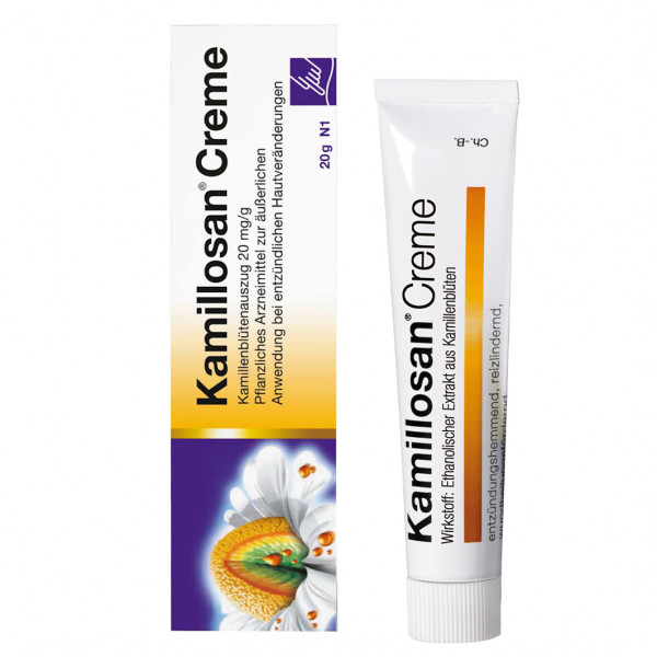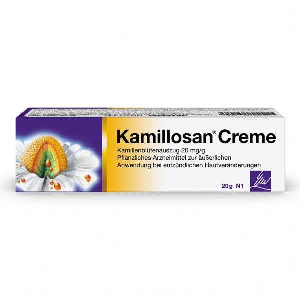 Kamillosan Creme. Auszug aus Kamillenblüten (Matricaria recutita L.) (2,7-5,5:1) 20 mg. Anwendungsgebiet: Kamillosan Creme wird angewendet zur Nachbehandlung im Anschluss an eine lokale Kortikoidtherapie entzündlicher Hauterkrankungen, u.a. verschiedener Ekzemformen wie z. B. Kontaktekzem, Gewerbeekzem, Ekzem bei Kindern, Neurodermitis (atopisches Ekzem).