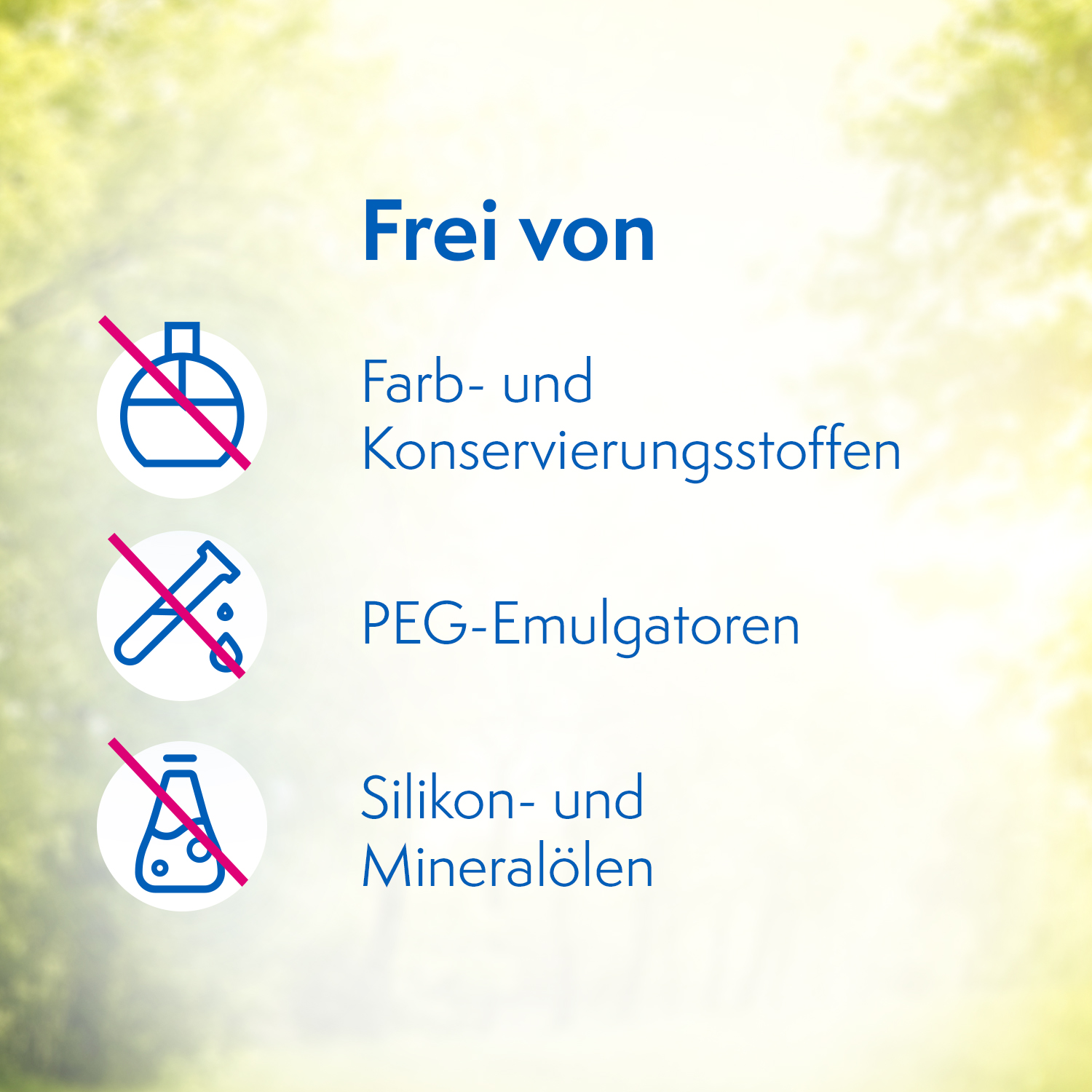 • Besonders hautverträglich: ohne Parfum, Farb- und Konservierungsstoffe*