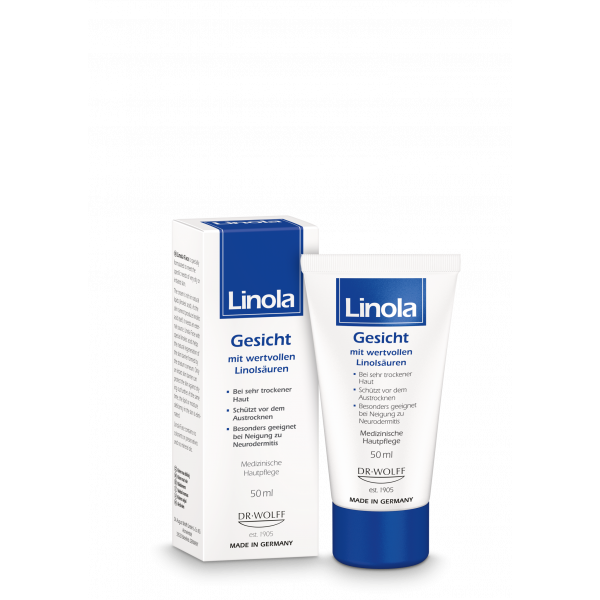Sehr trockene Haut fühlt sich oft rau und spröde an, juckt und spannt unangenehm oder neigt zu Rötungen und Reizungen. Ist die Hautbarriere durch innere oder äußere Einflüsse gestört, kann sie Feuchtigkeit nicht mehr gut speichern und trocknet aus. Die Linola Gesichtscreme ist eine Wasser-in-Öl Emulsion mit einem Fettgehalt von 30%. Sie schützt vor weiterem Feuchtigkeitsverlust, beruhigt die belastete Haut und fördert die natürliche Regeneration der Hautbarriere. Durch ihren hohen Gehalt an pflanzlichen Lipiden ist Linola Gesicht auch für die sehr trockene und zu Neurodermitis neigende Haut geeignet. Linola Gesicht ist abgestimmt auf die speziellen Pflegebedürfnisse sehr trockener, juckender oder gereizter Hautzustände. Die Creme ist frei von Farb- und Konservierungsstoffen, Mineralölen, Silikonen und Mikroplastik und auch bei empfindlicher Haut gut verträglich. Linola Gesicht besitzt einen hohen Gehalt an Linolsäure. Linolsäure ist für eine intakte Hornschicht, die als Barriere die Haut u. a. vor übermäßigem Wasserverlust und Austrocknung schützt, unbedingt erforderlich. Weil unser Körper diesen wichtigen Bestandteil einer gesunden Haut jedoch nicht selbst herstellen kann, braucht er ihn von außen. Zudem liegen die fettspendenden Komponenten von Linola Gesicht in einer Wasser-in-Öl-Emulsion vor, die für sehr trockene oder auch neurodermitische Haut besonders geeignet ist und sowohl dem Fett- als auch Feuchtigkeitsmangel der Haut entgegenwirkt. Dies unterstützt die Normalisierung der trockenen und auch zu Juckreiz neigenden Haut.