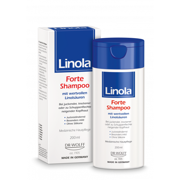 Das beruhigende Linola Forte Shampoo wurde speziell für die schonende Reinigung von Haaren und juckender, trockener oder zu Schuppenflechte neigender Kopfhaut entwickelt. Diese Haut reagiert auf eine zu intensive oder häufige Reinigung mit verstärkten Reizungen. Dies führt zu mehr Juckreiz, Rötungen, Trockenheit, Spannungsgefühl und Schuppenbildung. Daher wurden diese Aspekte bei der Entwicklung von Linola Forte Shampoo speziell berücksichtigt, wie auch klinische Studien bestätigten. Das glasklare Gel mit dem hautphysiologischen pH-Wert von 5,5 reinigt die Kophaut und die Haare mit ausgewogenen, milden Wasch-Substanzen extra sanft und hautschonend. Das innovative MikroemulsionsSystem versorgt die Haut mit wertvollen Linolsäure-reichen Pflanzenölen. So wird die Hautschutzbarriere geschont und die für die Geschmeidigkeit der Haut erforderliche Wasserbalance wird bewahrt und gefördert. Diese führt zu einer deutlichen Abnahme der Hauttrockenheit, des Hautspannens und der Schuppenbildung. Kühlendes Menthol und ein spezieller Pflanzenextrakt sorgen für Juckreizlinderung.