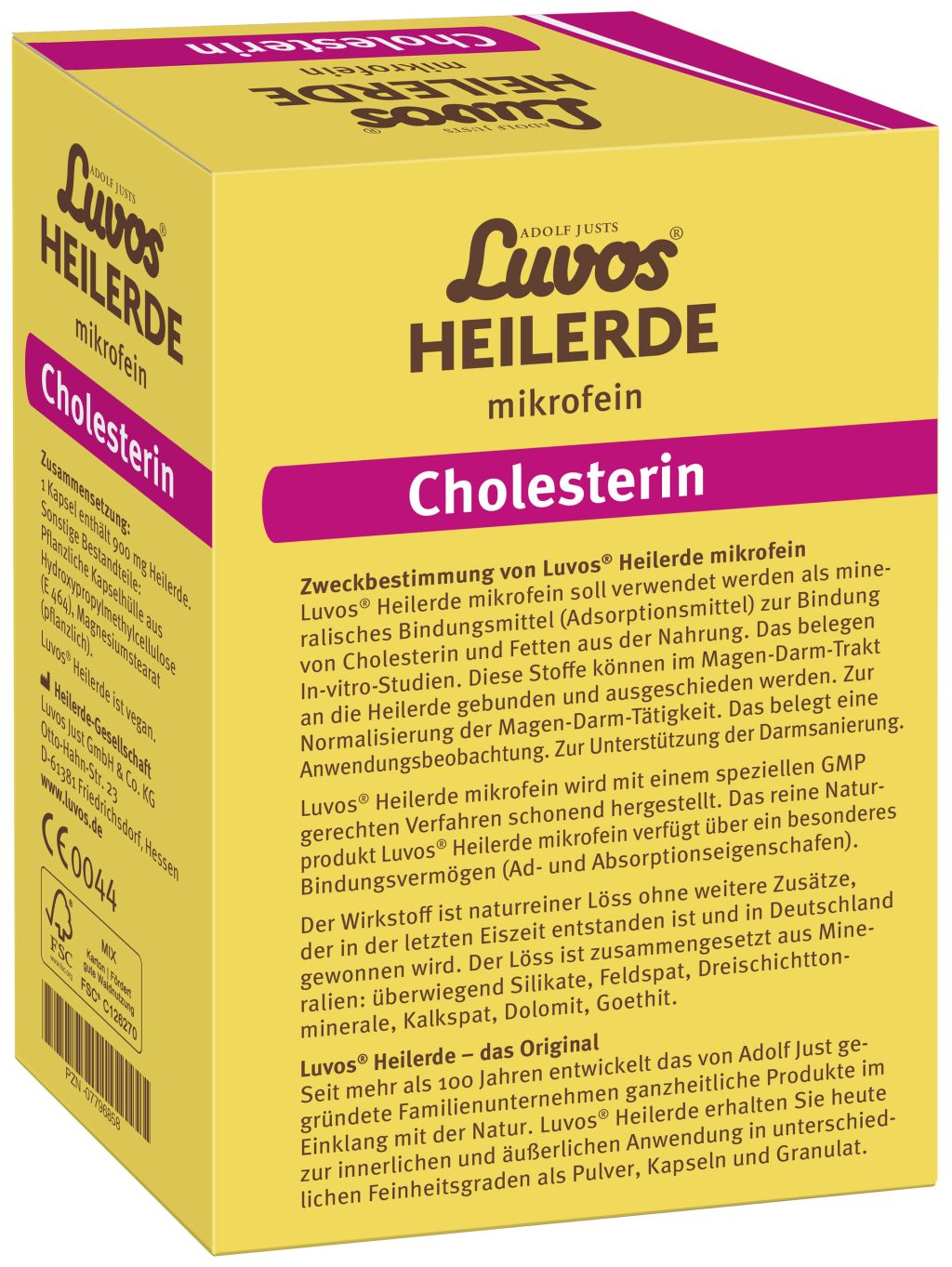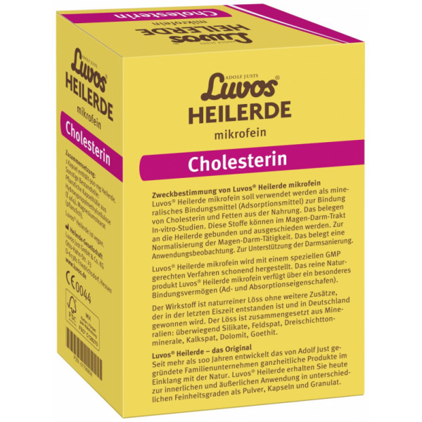 Das Naturheilmittel Luvos-Heilerde mikrofein kann Cholesterin und Fette wie ein Schwamm aus der Nahrung binden und sie so aus dem Körper transportieren (S. M. Rüdesheim; Kompendium Gastroenterologie 2011, 7. Jahrgang, Nr. 1). Das Cholesterin kann nicht mehr in die Blutbahn gelangen und sich an den Gefäßwänden als Plaque ablagern.