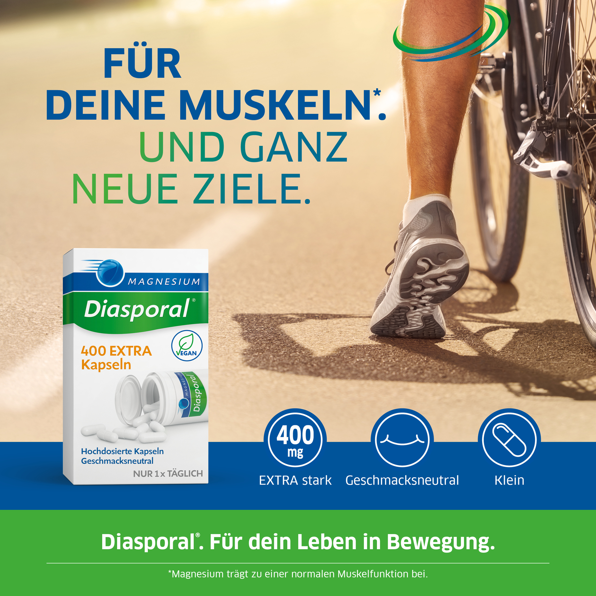 Die Kapseln mit extra viel Magnesium: jetzt auch vegan. Die Produkte der Diasporal® EXTRA-KLASSE sind hochdosiert. Eine Kapsel pro Tag versorgt den Körper mit 400mg Magnesium und trägt so zur Deckung eines erhöhten Bedarfs bei.