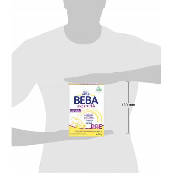 Stillen ist die beste Ernährung für Ihr Baby. Sprechen Sie bitte mit Ihrem Kinderarzt oder Ihrer Hebamme, wenn Sie eine Säuglingsnahrung verwenden wollen. Das Produkt bitte nicht verwenden bei Kuhmilcheiweiß-Allergie bzw. Unverträglichkeit, Galaktosämie, kongenitaler Laktose-Intoleranz, Galaktokinasemangel, Glukose- und Galaktose-Malabsorption, Maltose-Unverträglichkeit. Säuglingsanfangsnahrungen enthalten Kohlenhydrate. Häufiger oder dauernder Kontakt der Zähne mit kohlenhydrathaltigen Nahrungen kann Zahnzerstörungen durch Karies verursachen. Überlassen Sie Ihrem Kind die Flasche nicht zum Dauernuckeln. Bei einer bestehenden Kuhmilchallergie oder dem Verdacht auf eine solche darf BEBA EXPERT HA PRE nicht gegeben werden. Treten allergieverdächtige Symptome bei deinem Baby auf, solltest du deinen Kinderarzt hinzuziehen.