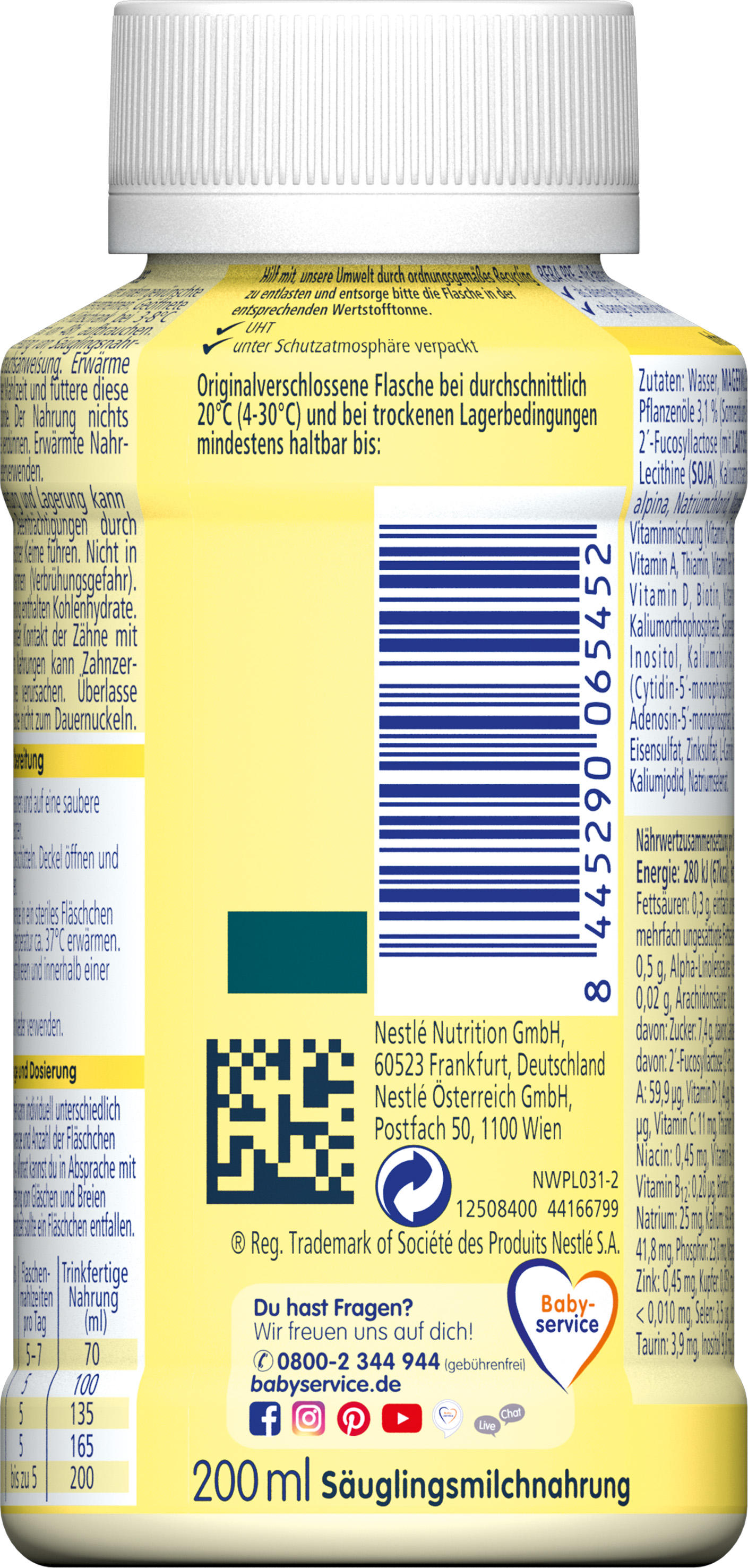 Die Trinkmenge je Fläschchen kann individuell unterschiedlich sein. Die empfohlene Trinkmenge und Anzahl der Fläschchen sind Richtwerte.